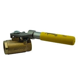 Apollo™ 7150801, Ball Valve, 2-Piece, Series: 71-500, 2 in Nominal, FNPT End Style, 600 psi CWP Pressure, Standard Port, Spring Return Handle Actuator, Chrome Plated Brass Ball, 4.68 in Inlet to Outlet Length, 9 in Top to Inlet Center, Bronze Body, 316 Stainless Steel/PTFE Trim, PTFE Softgoods, Domestic, Also Known As Dead Man Valve