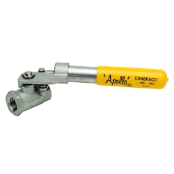 Apollo™ 7650401A, Standard Configuration Ball Valve, 2-Piece, Series: 76-500, 3/4 in Nominal, FNPT End Style, 2000 psi CWP Pressure, Standard Port, Spring Return Handle Actuator, Stainless Steel Ball, 3 in Inlet to Outlet Length, 316 Stainless Steel/PTFE Trim, MPTFE/PTFE Softgoods, Domestic, Also Known As Dead Man Valve