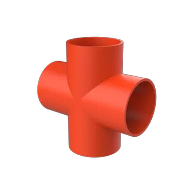 Gruvlok® 0390036242 FIG 7068P Cross, Carbon Steel, 4 in Nominal, Plain End Style, Rust Inhibiting Orange Painted, Domestic