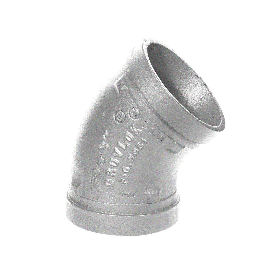 Gruvlok® Elbow, Series: FIG 7051, Fitting/Connector Type: 45 deg Elbow, 3-1/2 in Nominal, Grooved, SCH 40/STD, Fabricated, Carbon Steel, Galvanized, 4 in OD, Domestic