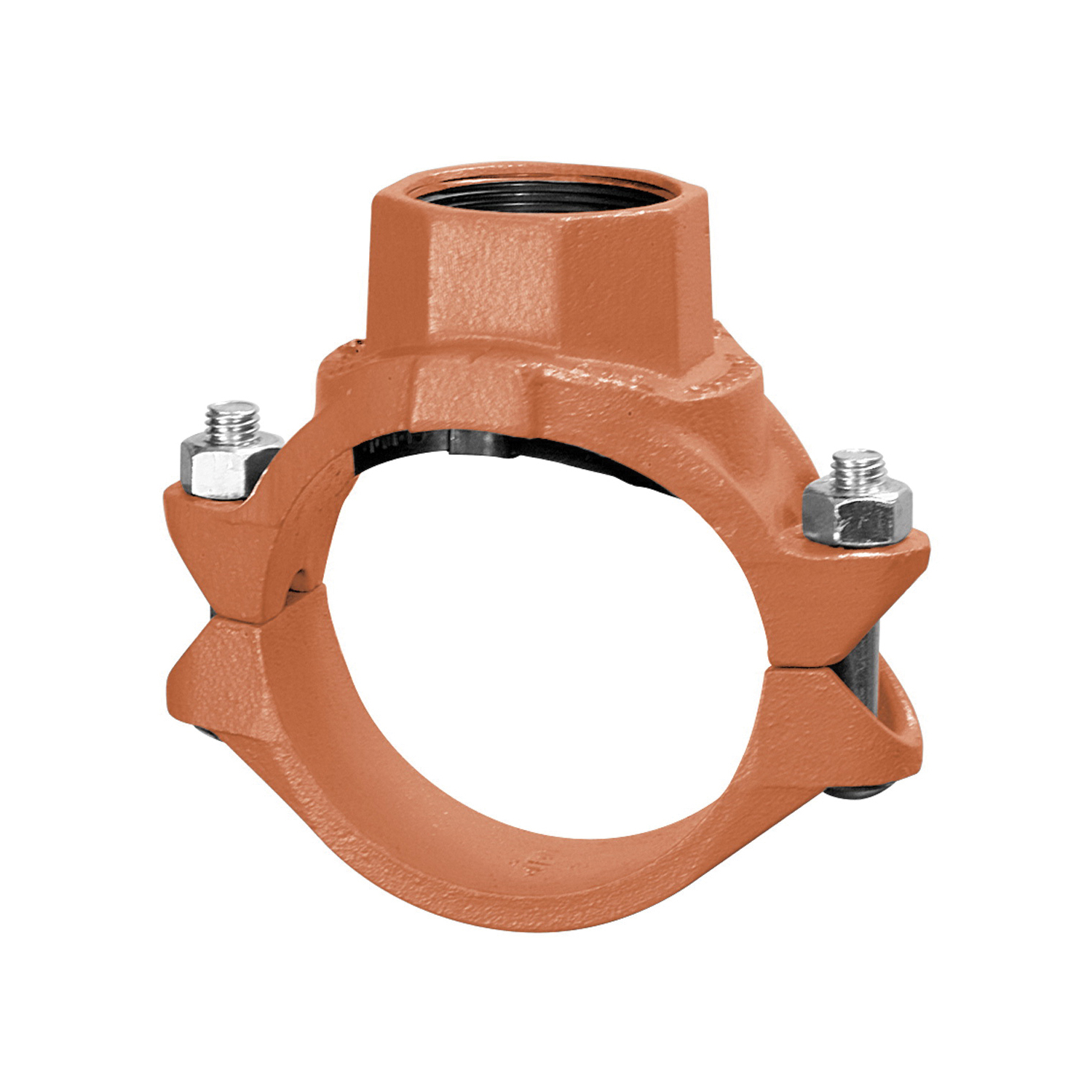 Gruvlok® 0390171528 FIG 7045 Clamp-T with EPDM Gasket Branch Outlet, 6 x 2 in Nominal, FNPT Connection, Ductile Iron Clamp, Rust Inhibiting Orange Painted, Domestic