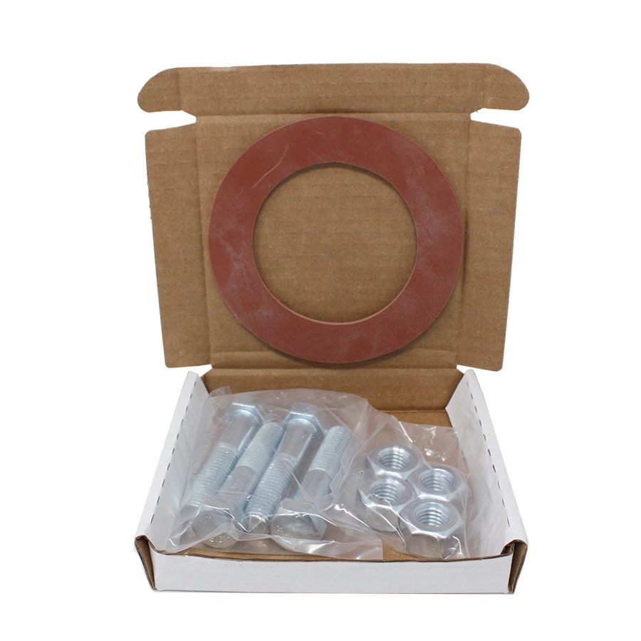 QUICKPAK 2-1/2", 150 lb, 1/8 Thick, Ring, Red Rubber Gasket Kit, Zinc-Plated Bolts & Heavy Hex Nuts. Bolts and Nuts are Packaged in Sealed Poly Bags.