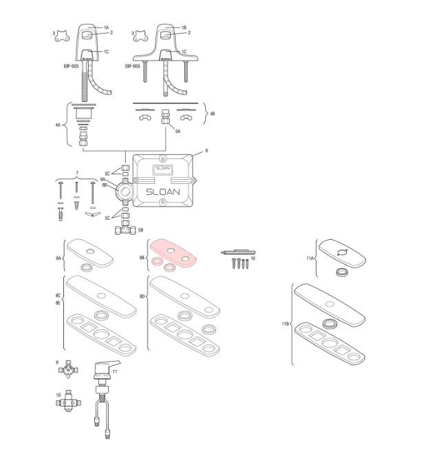 Sloan® Double Hole Trim Plate Kit, Centerset, Series: MIX-101-A, 4 in, For Use with: Optima® EBF-615/625/650/655 Deck Mixing Valve, Polished Chrome, Domestic, Commercial