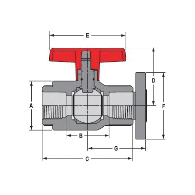 Spears® Regular Ball Valve, Compact, 1/2 in Nominal, Flanged, 150 psi, 200 deg F, T-Handle Actuator, CPVC Ball, 2-5/16 in Top to Inlet Center, CPVC Body, CPVC Stem and PTFE Seat Trim, EPDM, Gray, Domestic