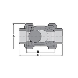 All thermoplastic check valves shall be True Union Ball type constructed from PVC Type I, ASTM D1784 Cell Classification 12454 or CPVC Type IV, ASTM D1784 Cell Classification 23447. All O-rings shall be EPDM or FKM. All valve union nuts shall have Buttress threads. All valve components shall be replaceable. All EPDM valves shall be certified by NSF International for use in potable water service. All 1/2 to 2 in valves shall be pressure rated at 235 psi and all 2-1/2 to 6 in and all flanged valves shall be pressure rated at 150 psi for water at 73 deg F, as manufactured by Spears® Manufacturing Company.