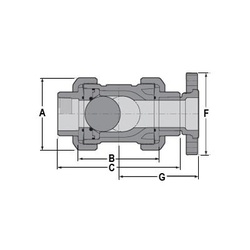All thermoplastic check valves shall be True Union Ball type constructed from PVC Type I, ASTM D1784 Cell Classification 12454 or CPVC Type IV, ASTM D1784 Cell Classification 23447. All O-rings shall be EPDM or FKM. All valve union nuts shall have Buttress threads. All valve components shall be replaceable. All EPDM valves shall be certified by NSF International for use in potable water service. All 1/2 to 2 in valves shall be pressure rated at 235 psi and all 2-1/2 to 6 in and all flanged valves shall be pressure rated at 150 psi for water at 73 deg F, as manufactured by Spears® Manufacturing Company.