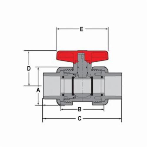 Spears® Ball Valve, Standard, Series: True Union 2000, 4 in Nominal, Socket, 150 psi, 140 deg F, T-Handle Actuator, PVC Ball, 11-7/8 in Inlet to Outlet Length, 6-3/4 in Top to Inlet Center, PVC Body, PVC Stem and PTFE Seat Trim, FKM, Gray, Domestic