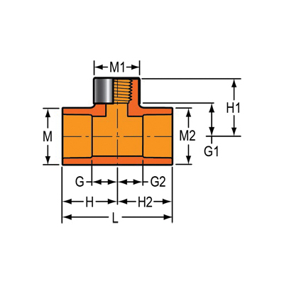 Spears® FlameGuard® Tee, Sprinkler Head, Fitting/Connector Type: Tee, 1 in Nominal, Socket x Socket x Special Reinforced FNPT, 3-19/32 in Length, Molded, CPVC, Orange, Domestic