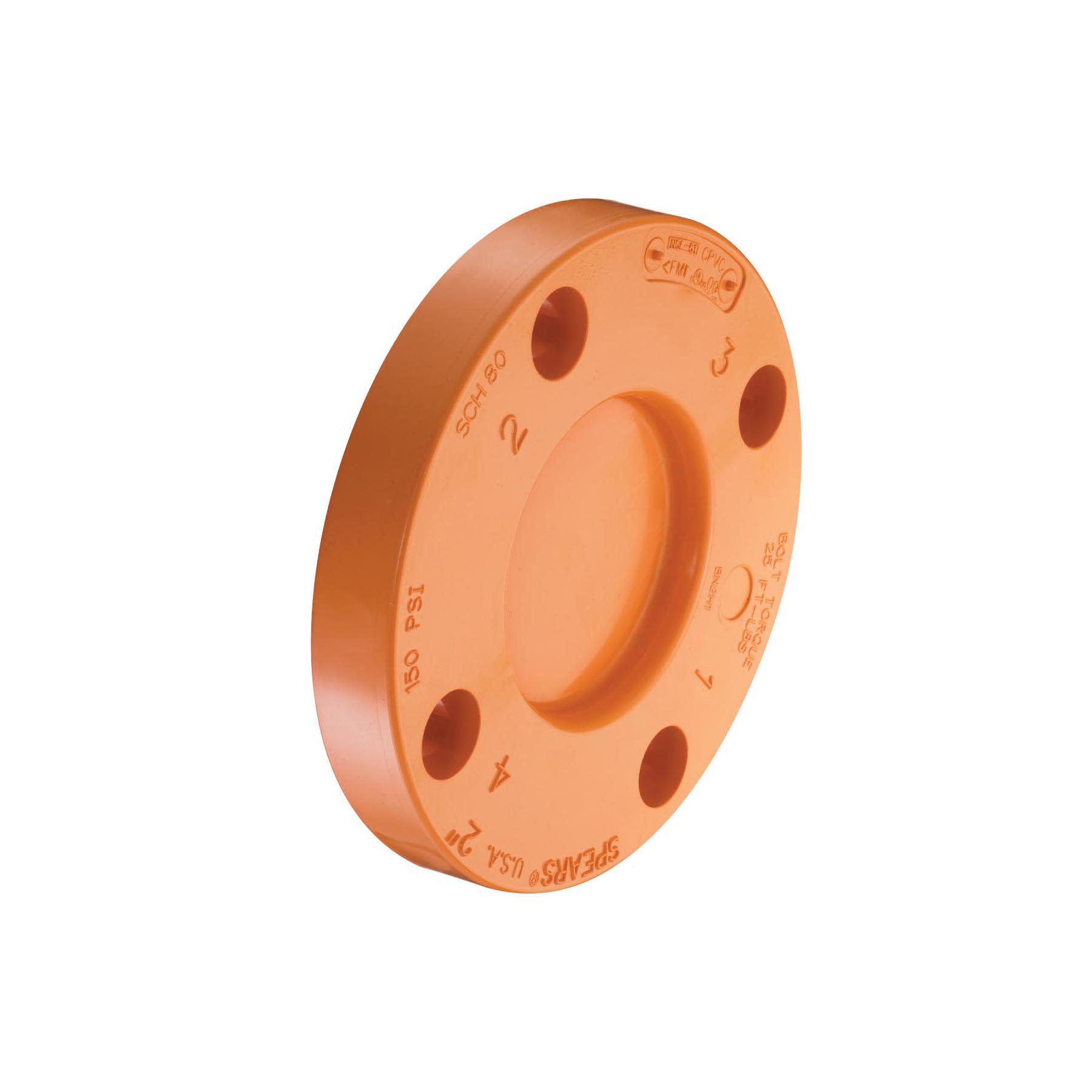 Spears® FlameGuard® Blind Flange, 2 in Nominal, 27/32 in Thickness, 4-3/4 in Bolt Circle, 4 Bolt Holes, 5/8 in, 5-31/32 in Outside Dia, 175 psi, 150 lb, 150 deg F, CPVC, Orange, Domestic