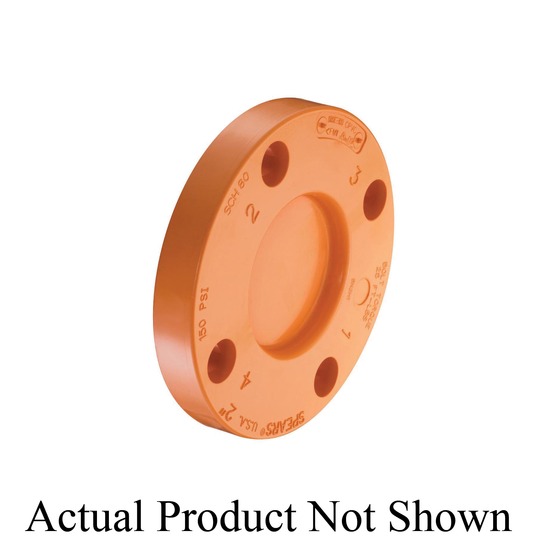 Spears® FlameGuard® Blind Flange, 3 in Nominal, 1-1/16 in Thickness, 6 in Bolt Circle, 4 Bolt Holes, 5/8 in, 7-5/8 in Outside Dia, 175 psi, 150 lb, 150 deg F, CPVC, Orange, Domestic