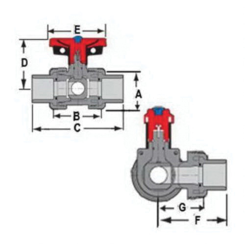 Spears® Diverter Ball Valve, 3-Way Horizontal, Series: True Union 2000, 3 in Nominal, Socket, 150 psi, 140 deg F, T-Port Port, T-Handle Actuator, PVC Ball, PVC Body, PVC Stem Trim, EPDM, Gray, Domestic
