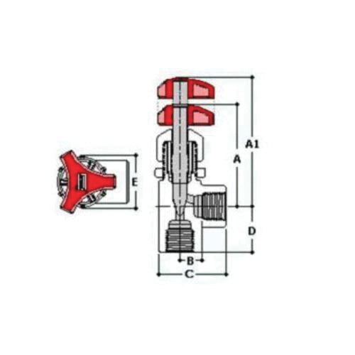 Spears® Needle Valve, Angle Pattern, 3/8 in Nominal, FNPT, 150 psi, 176 deg F, Handle Actuator, 1-3/16 in Inlet to Outlet Length, 3 to 3-1/2 in Top to Inlet Center, Polypropylene Body, GFPP Trim, PTFE Stem Seal, Natural, Domestic
