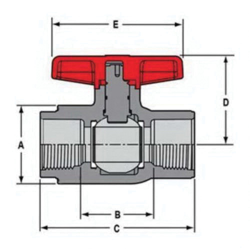 Spears® Regular Ball Valve, Compact, Series: 2000, 2 in Nominal, Socket, 235 psi, 176 deg F, CPVC Ball, 6 in Inlet to Outlet Length, 3-3/4 in Top to Inlet Center, CPVC Body, CPVC Stem and PTFE Seat Trim, EPDM Softgoods, Domestic
