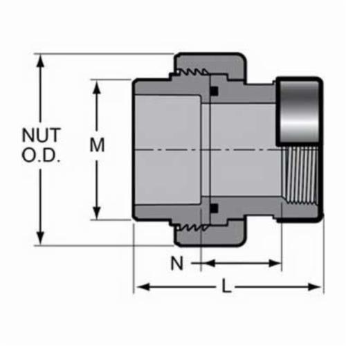 Spears® Union, Fitting/Connector Type: Union, 1 in Nominal, Socket x Special Reinforced FNPT, 2-15/16 in Length, SCH 80/XH, 235 psi, Molded, CPVC, FKM O-Ring Seal, Gray, 73 deg F, Domestic