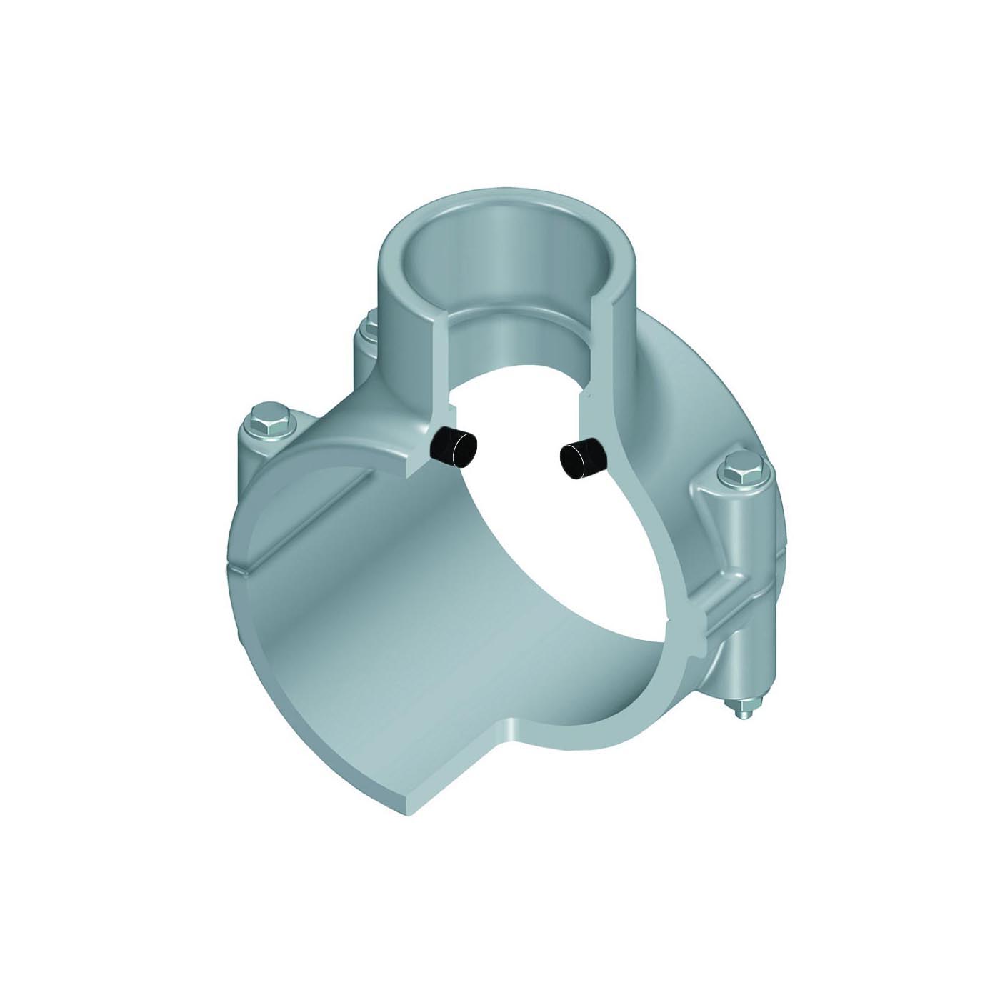 Spears® 866-621C Clamp-On Pipe Saddle, 10 x 2 in Nominal, Socket Connection, 6 in Dia Hole, CPVC Clamp, EPDM O-Ring, SCH 80/XH Domestic
