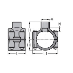 Spears® Pipe Saddle, Clamp-On, 10 x 2 in Nominal, Socket, 6 in Hole Dia, SCH 80/XH, 150 psi, 73 deg F, Zinc Bolt, CPVC Clamp, 8-1/2 in L x 15-5/16 in W, Gray, Domestic