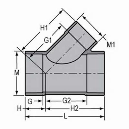 Spears® Reducing Wye, Fitting/Connector Type: Wye, 6 x 6 x 2 in Nominal, Socket, 12-5/8 in Length, SCH 80/XH, 150 psi, Bushed, CPVC, Gray, 73 deg F, Domestic