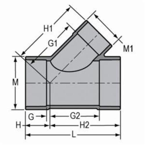 Spears® Reducing Wye, Fitting/Connector Type: Wye, 6 x 6 x 4 in Nominal, Socket, 12-21/32 in Length, SCH 80/XH, 150 psi, Molded, CPVC, Gray, 73 deg F, Domestic