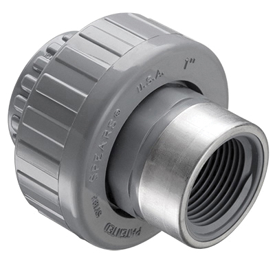 Spears® Union, Fitting/Connector Type: Union, 1-1/2 in Nominal, Socket x Special Reinforced FNPT, 3-13/32 in Length, 235 psi, Molded, CPVC, EPDM O-Ring Seal, Gray, 73 deg F, Domestic