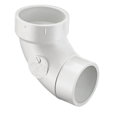 Spears® P302-015, P302, 90 deg Elbow Fitting/Connector, 1-1/2 in Nominal, Hub x Spigot End Style, Molded Method of Manufacture, DWV, PVC, White, Domestic/Import: Domestic