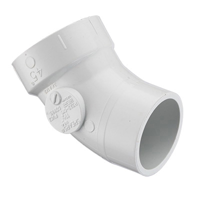 Spears® P323-015, P323, 45 deg Elbow Fitting/Connector, 1-1/2 in Nominal, Hub x Spigot End Style, Molded Method of Manufacture, DWV, PVC, White, Domestic/Import: Domestic