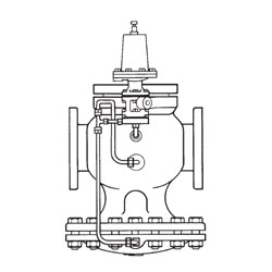 Spirax Sarco Pressure Reducing Main Valve, Series: 25 Series, 6 in Nominal, Flanged End Style, 250 psig Pressure, Cast Iron Body, Media: Gas/Industrial Fluid/Steam, Pilot Actuator