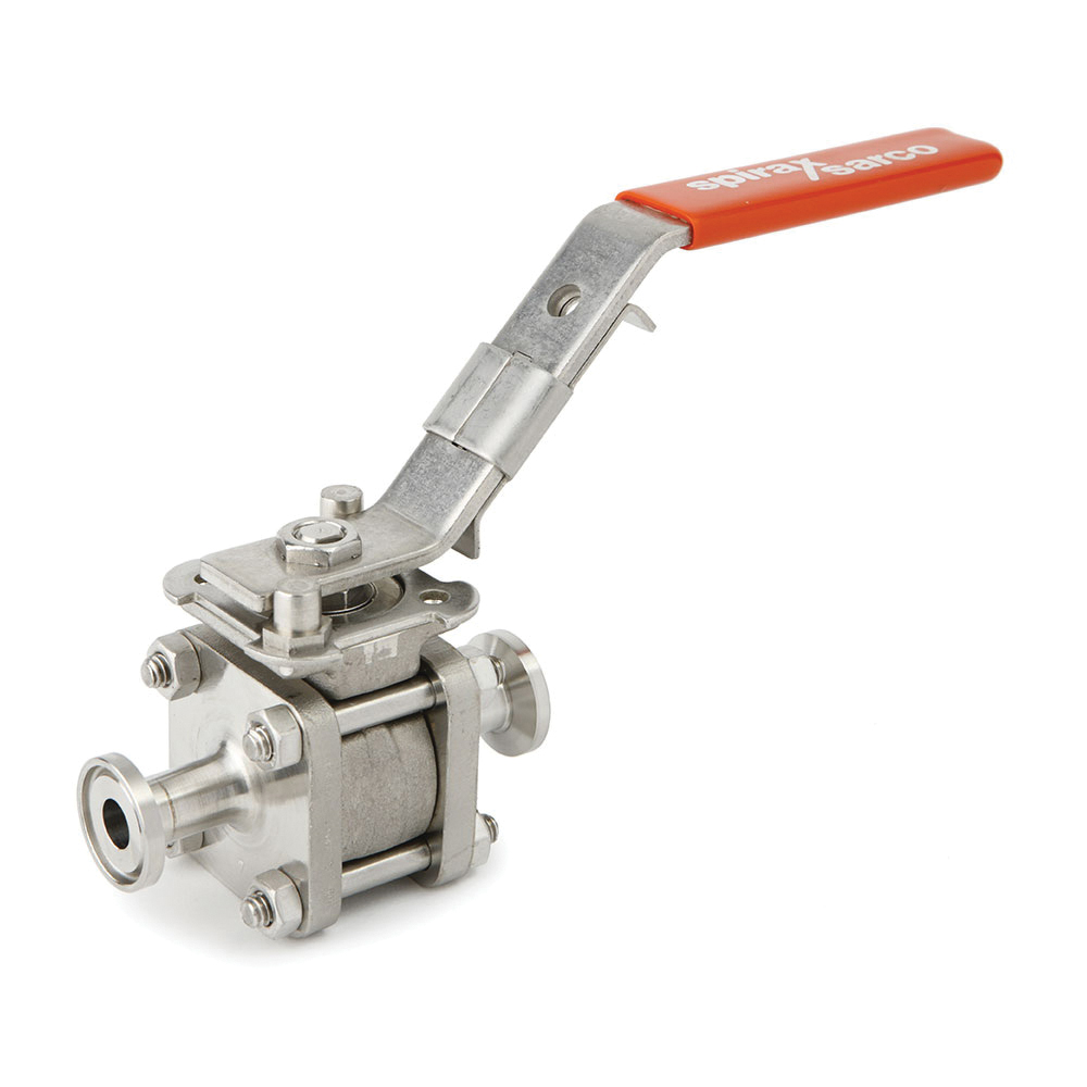 Spirax Sarco Automation Ball Valve, 3-Piece, Series: M80Vi, 2-1/2 in Nominal, Sanitary Clamp End Style, 720 psi Pressure, Full Port, Cast 316L Stainless Steel Body, Stainless Steel Ball, Stainless Steel/Virgin PTFE TFM 1600 Trim, FKM/Virgin PTFE Softgoods, Lockable Handle Actuator, -20 to 180 deg C, 15 Ra Electro-Polished