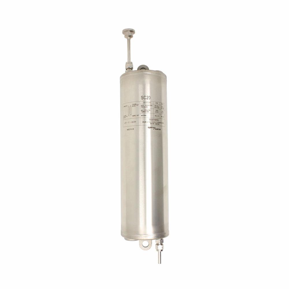 The Spirax Sarco SC20 sample cooler is used to cool samples of boiler water or steam. The cooler consists of a stainless steel coil, through which the sample flows, and a stainless steel body, through which cooling water flows in the opposite direction. A pre-drilled mounting bracket is incorporated into both end caps.