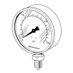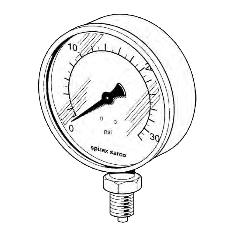 Spirax Sarco Pressure Gauge, Single Scale, 4 in Dial, 0 to 200 psig, NPT, 304 Stainless Steel Case