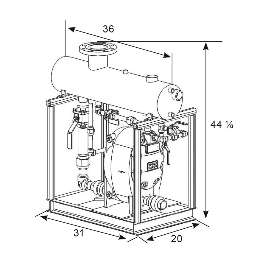 Spirax Sarco Pressure Powered Pump, Low Profile Simplex, Series: PPEC, 30 gpm Flow Rate, 1 in Inlet, 1 in Outlet, NPT Connection, 125 psig Maximum, 8 gal Reservoir, Stainless Steel Float, 0 to 450 deg F, Cast Iron Body, 31 in W x 20 in D x 44-1/8 in H Dimensions