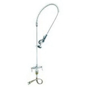 T & S Pre-Rinse Unit, Easy-Install, 1.15 gpm, 14-1/16 in Spout Reach, 12-9/16 in Spout Height, 18 in Hose, Lever Handle, Side Spray(Y/N): Yes, 1 Faucet Holes, 1-1/2 in Faucet Hole, 1/2 in, NPSM, 1-3/8 in Maximum Deck Thickness, Deck Mount, Quarter-Turn Eterna Compression Valve/Cartridge, 7-9/16 in W, Brass, Polished Chrome, Domestic