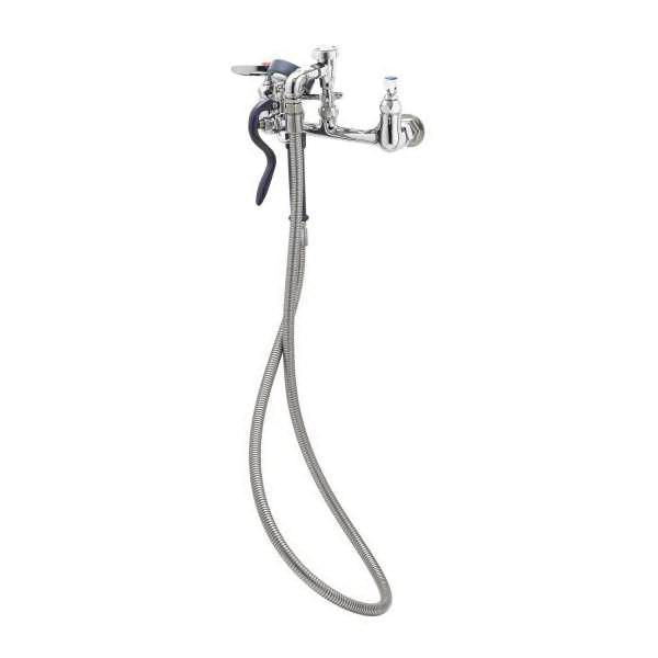 T & S Mixing Faucet, 3.93 gpm Flow Rate, 8 in Center Distance, 68 in Hose, Lever Handle, Side Spray(Y/N): No, 1/2 in Connection, FNPT Connection, Wall Mounting, Quarter-Turn Eterna Compression, 12-5/8 in W Dimensions, Brass, Polished Chrome
