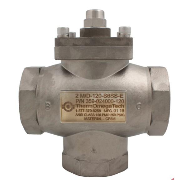 ThermOmegaTech® 359-014000-105 300 Series 3-Way Mixing/Diverting Valve, 2 in Nominal, FNPT End Style, 250 psig Pressure, 316 Stainless Steel Body, Domestic