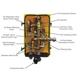 The Therm-O-Mix® tepid water delivery system provides an instantaneous and reliable source of tepid water for safety showers, facewash and eyewash stations using existing plant steam and water. The unit is completely mechanical and requires no outside electricity or air to function, making it particularly ideal for explosion-proof industrial environments.