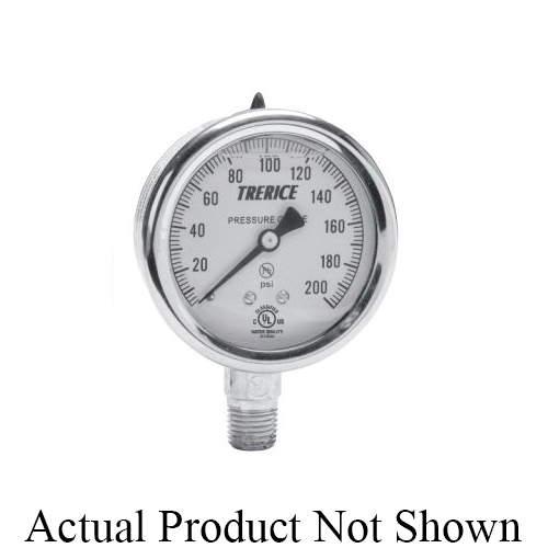 Trerice D83LFSS4002LA160 D80 Industrial Pressure Gauge, 0 to 160 psi Pressure, 1/4 in MNPT Connection, 4 in Dia Dial, +/- 1.6 % Accuracy, Glycerin Liquid Filled