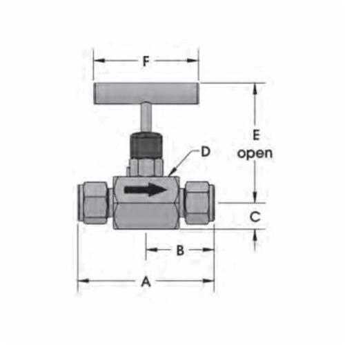 Tylok® Ty-Flo® Needle Valve, 3/8 in Nominal, CBC-Lok® Tube, 10000 psi, -10 to 200 deg F, 3.08 in Inlet to Outlet Length, 2.13 in Top to Inlet Center, 316 Stainless Steel Body, 316 Stainless Steel Trim, FKM