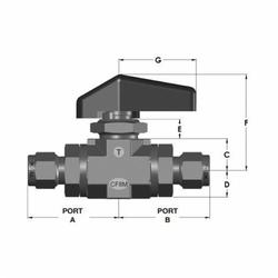 Tylok® Ty-Flo® Ball Valve, Series: HP Series, 3/8 in Nominal, CBC-Lok® Tube, 5000 psi, -15 to 300 deg F, 1/4 in Orifice, Handle Actuator, 1.69 in Top to Inlet Center, 316 Stainless Steel Body, 316 Stainless Steel Stem/PCTFE Trim, FKM