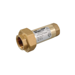 Series LF7R Lead Free* Dual Check Valves prevent the reverse flow of polluted water from entering into the drinking water supply at the service entrance or at individual outlets. It consists of a Lead Free* cast copper silicon alloy body construction, with two compact replaceable plastic check modules, and stainless steel springs. Series LF7R is designed for non-health hazard residential water system containment, continuous pressure applications. It is installed immediately downstream of the residential water meter, in a vertical or horizontal position. Check with local inspection authorities for installation requirements. Minimum Working Pressure: 10psi (69 kpa) Maximum Working Pressure: 175psi (12 bar).