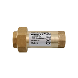 WATTS® Dual Check Valve, Series: LF7RU2-2, 3/4 in Nominal, FNPT, 175 psi, 33 to 180 deg F, Low Lead Compliance: Yes, Media: Water, 3-5/8 in Inlet to Outlet Length, Copper Silicon Alloy Body, Stainless Steel Spring/Santoprene Disc Trim, EPDM Seal, 1-7/8 in H, Domestic